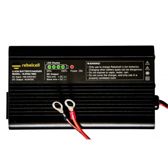 Potente cargador para cargar de forma rápida y segura las baterías de iones de litio Rebelcell Angling.