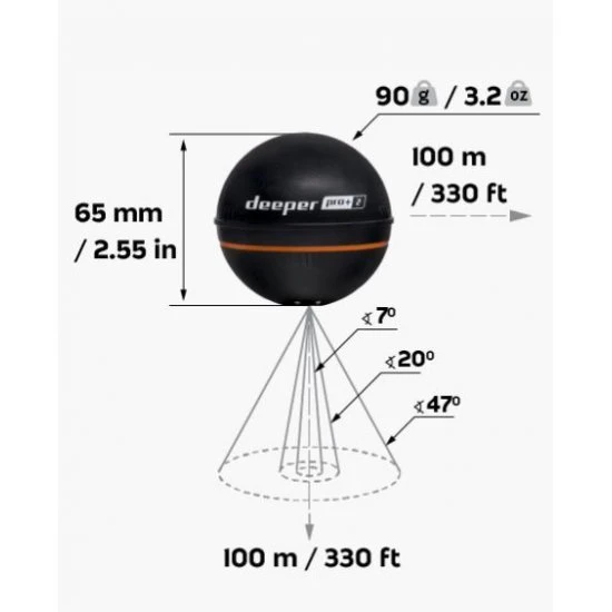 El Deeper Pro +2 es un desarrollo posterior del conocido Deeper Pro +. Mejorado y mejor que nunca, ahora con tres frecuencias de haz, imágenes más nítidas y claras, mejor rendimiento de GPS, mayor duración de la batería de hasta 9 horas (según el uso) y profundidad de escaneo de hasta 100 m/330 pies.