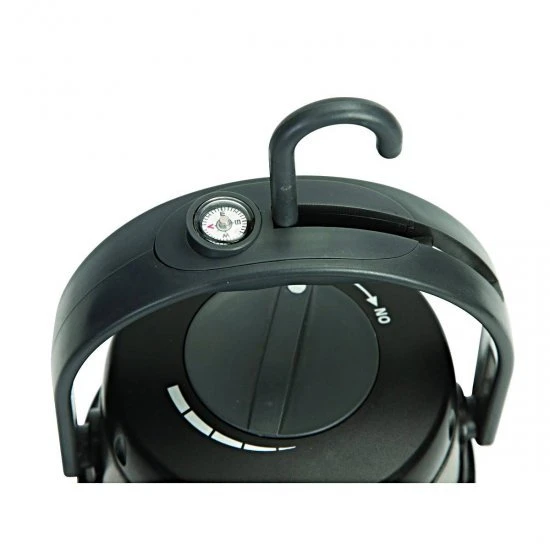 Una lámpara de mesa robusta. Los LED de alta potencia con un color de luz cálido, el dimmer continuo y la pantalla blanca mate proporcionan una iluminación agradable. La batería de iones de litio integrada se puede cargar con el cable USB suministrado o el adaptador de 230 voltios. La batería también se puede utilizar para cargar un teléfono móvil, por ejemplo. El mango contiene una brújula y un gancho plegable para colgar. Tiempo de combustión: 100-9 horas. Salida de luz: 8-220 lúmenes.