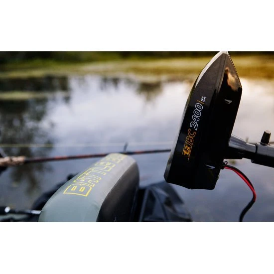 El BC 2400 es el complemento perfecto para el BC Battleboat, pero también se puede montar en cualquier otro bote de panza que tenga un espejo de popa del tamaño correcto. La velocidad se puede controlar fácilmente con este exclusivo, ligero y compacto motor de barcaza mediante el mando a distancia suministrado. Se puede plegar con solo presionar un botón, la profundidad a la que gira la hélice se puede fijar en cualquier punto. Las siete configuraciones de velocidad ofrecen un control perfecto ya sea que esté pescando verticalmente, lanzando o pescando al curricán. Las 24 libras de empuje lo llevarán de manera segura a su destino en largas distancias, para que pueda dedicar más tiempo y energía a la pesca.