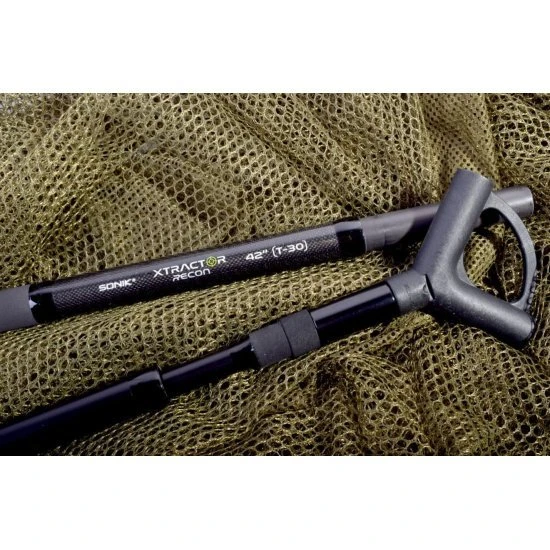 La red de aterrizaje Xtractor Recon ha sido diseñada para complementar las cañas de carpa retráctiles más cortas con una longitud de transporte de solo 30 «y sigue siendo una red de aterrizaje completa de 42». La red cuenta con un resistente mango telescópico de tres piezas con adhesivos y pasadores para una máxima confiabilidad. El resistente bloque esparcidor de nailon tiene una abrazadera cruzada moldeada para retener la malla, lo que permite una maniobra rápida de la red y una liberación suave de la malla. Malla hexagonal de flujo libre de malla verde oliva reforzada de 42 pulgadas en los lados y una malla de base súper suave. Una generosa profundidad de 95 cm proporciona el equilibrio perfecto para sujetar peces temporalmente y moverse rápidamente por el agua.