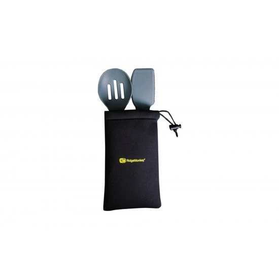 El juego de utensilios Ridgemonkey Q-Lock es sólido, duradero y consta de una espátula bifurcada, una espátula dentada, una cuchara y una espumadera. Con nuestro exclusivo sistema de asa plegable Q-Lock y un práctico gancho para colgar para almacenar o secar. Los utensilios vienen en una bolsa de neopreno para un fácil almacenamiento.