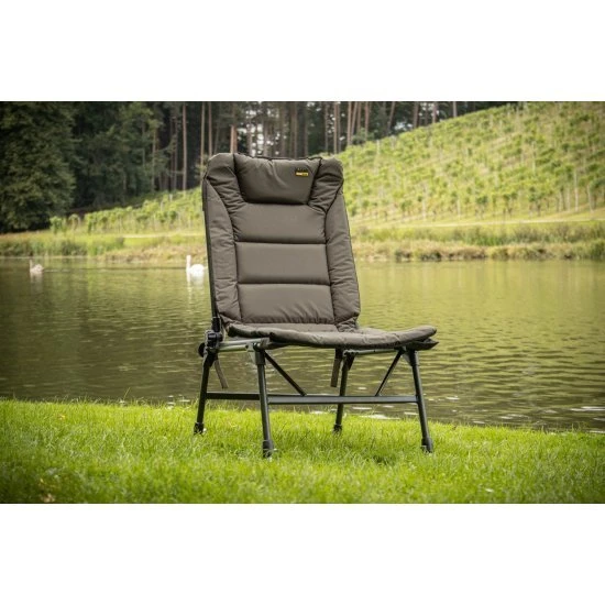 Cómodo sillón de sesión con respaldo regulable en múltiples posiciones hasta un ángulo de no menos de 180 grados. Colchón recubierto de PVC 600D totalmente forrado en un sutil verde oliva y equipado con el exclusivo soporte lumbar de Solar donde el colchón se incorpora al marco. Las cuatro patas son ajustables y están equipadas con un mecanismo de bloqueo, doblar las patas al mover la silla también es cosa del pasado. El marco está equipado con correas de velcro para asegurar las piernas durante el transporte.