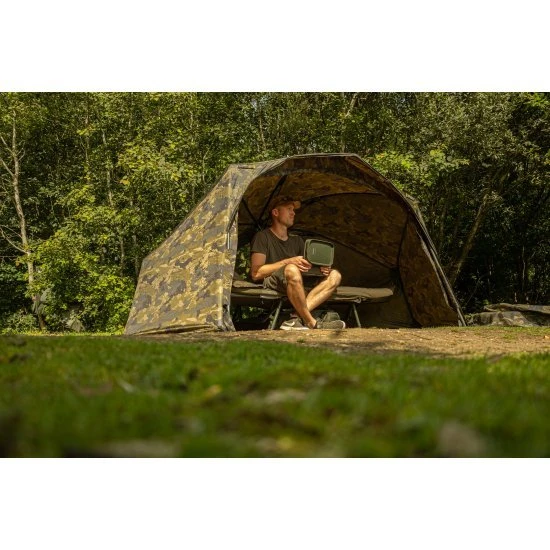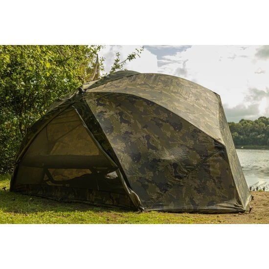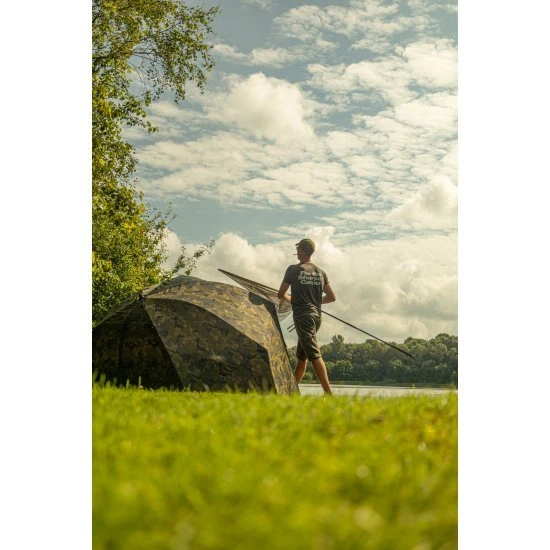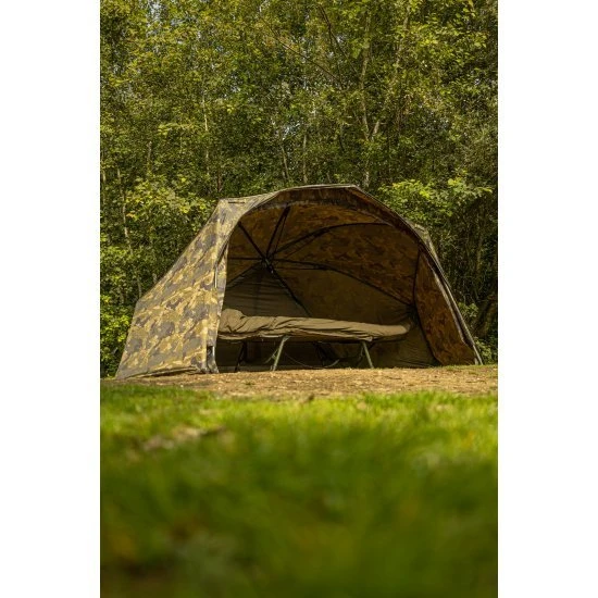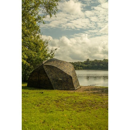 Este paraguas tiene un sistema especial de 7 costillas/bloques para espacio adicional. Las nervaduras están cerca de la lona y la posición de las nervaduras asegura una parte trasera plana del paraguas, lo que resulta en el máximo espacio interior. Fabricado con material resistente al agua 10.000 HH con el sutil diseño de camuflaje de Solar, equipado con canaletas para que la lluvia se drene por los lados, postes dobles para tormentas y barra de soporte en el techo. Múltiples opciones de puerta, incluido el panel mozzi, además de que el frente se puede quitar por completo para usarlo como sombrilla. Las extensiones de costillas desplegables hacen que los postes de tormenta adicionales sean innecesarios. La parte posterior tiene 2 grandes ventanas de malla para un flujo de aire máximo. Se suministra con clavijas resistentes, postes para tormentas y un estuche de transporte espacioso.