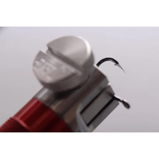 DeJAG Products SP Vice está hecho para sujetar su anzuelo mientras afila. Con una simple perilla giratoria, sujeta el gancho en el tornillo de banco para que pueda mantener el gancho quieto fácilmente durante el afilado. El SP Vice tiene un hueco en el interior donde puedes guardar las piedras SP de forma segura.